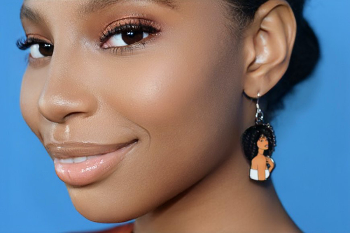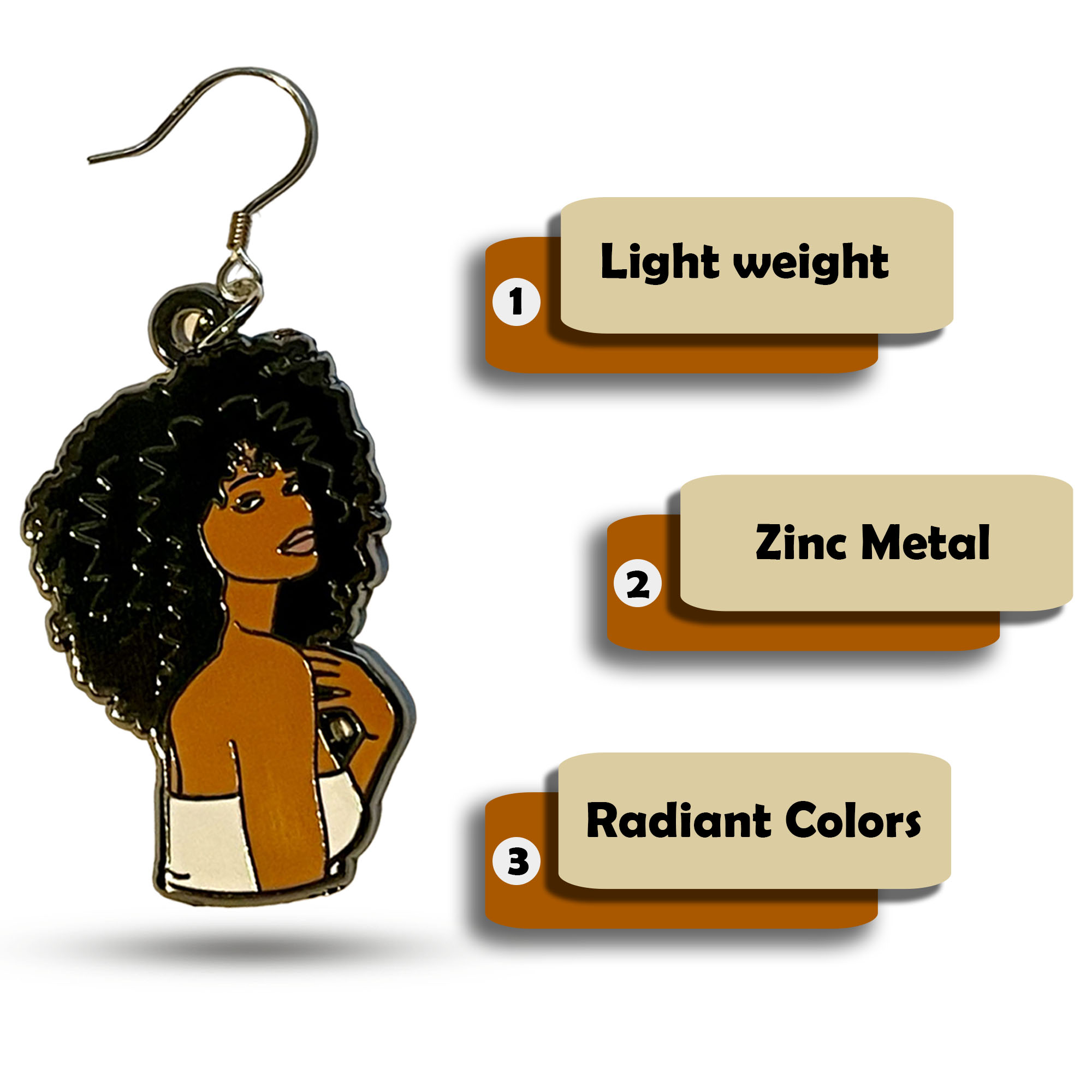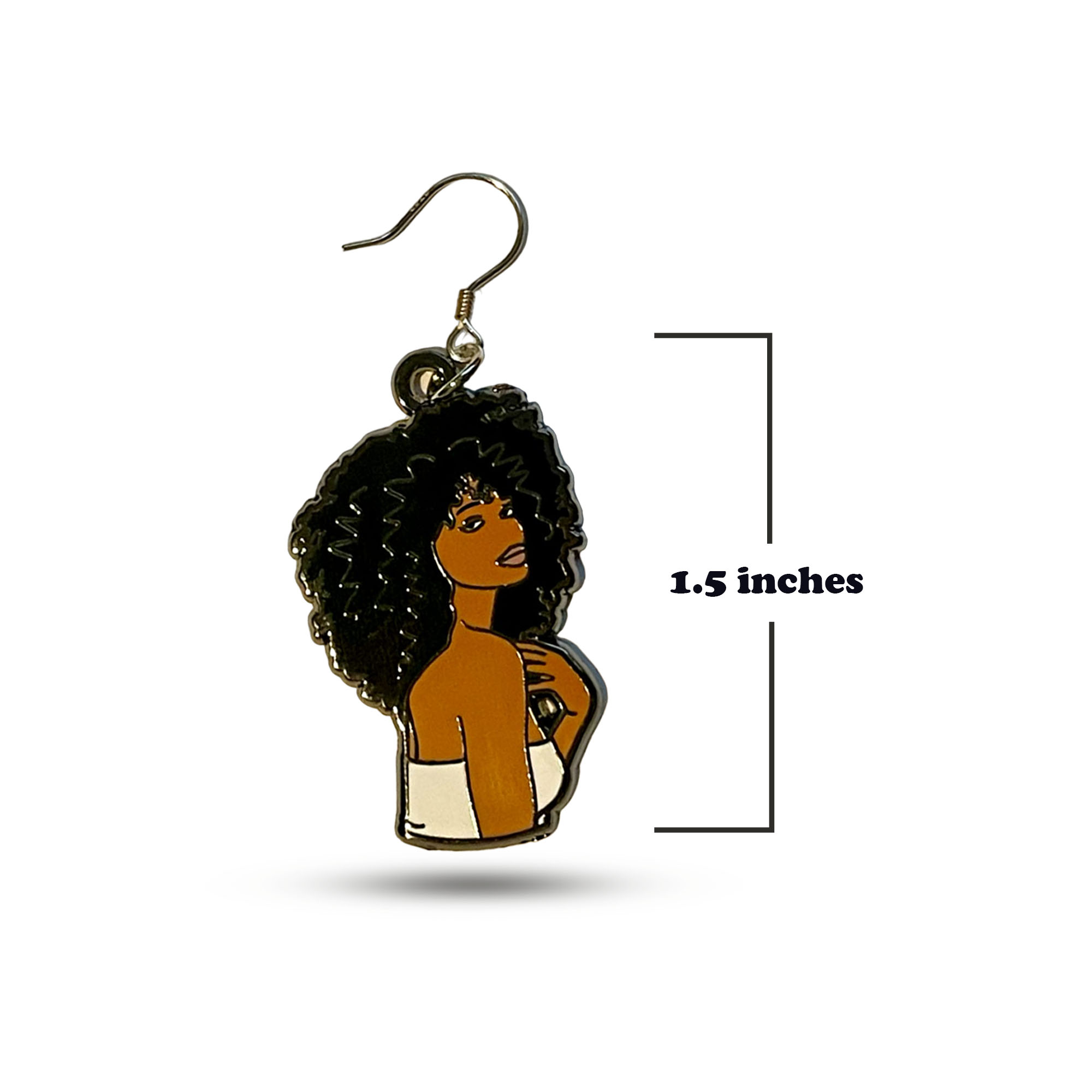 Cute Afro Girl earrings inspired by an iconic photo of Chekesha Johnson